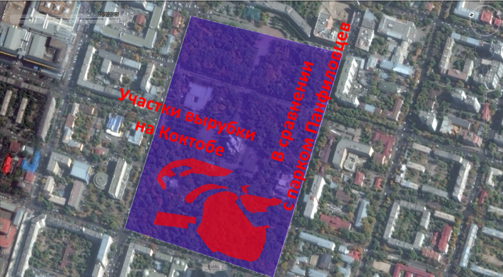 "Нас интересовало, сколько деревьев было вырублено. Была ли вырубка согласована с акиматом. Были ли проведены общественные слушания с горожанами по такому серьезному проекту. Все ли документы в порядке у администрации парка. Вчера, 5 апреля, мы получили ответ из акимата. Из письма Управления природных ресурсов и регулирования природопользования города Алматы (№ 1-03.зт-к-249 от 31.03.2016) выяснилось, что вырубку деревьев администрация провела незаконно, разрешение на снос деревьев управлением не выдавалось! Также остается открытым вопрос о том, была ли получена экологическая экспертиза проекта и был ли он обсужден с общественностью, так как городские власти нам информацию об этом не предоставили", - говорит менеджер экологического общества "Зеленое спасение" Светлана Спатарь.