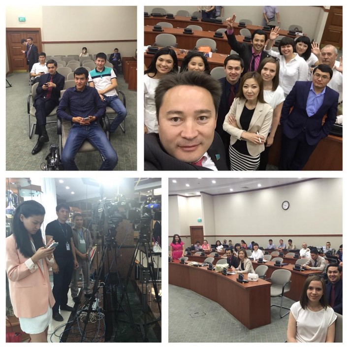 Вот, например, мажилисмен Мейрам Бегентаев в честь такого дня зашел в пресс-центр, где проходит трансляция пленарных заседаний нижней палаты, и сделал селфи с представителями СМИ.