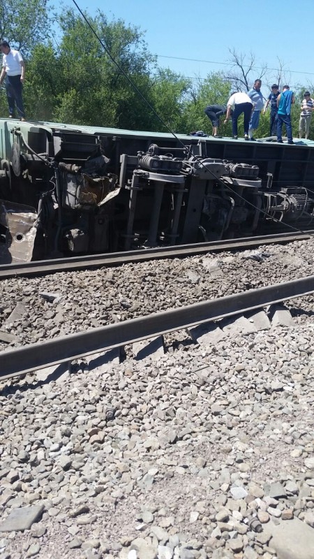 Как сообщают очевидцы, ЧП произошло около 14.00, не доезжая до станции Шу, в Жамбылской области с поездом сообщением Астана - Алматы № 9 "Байтерек".