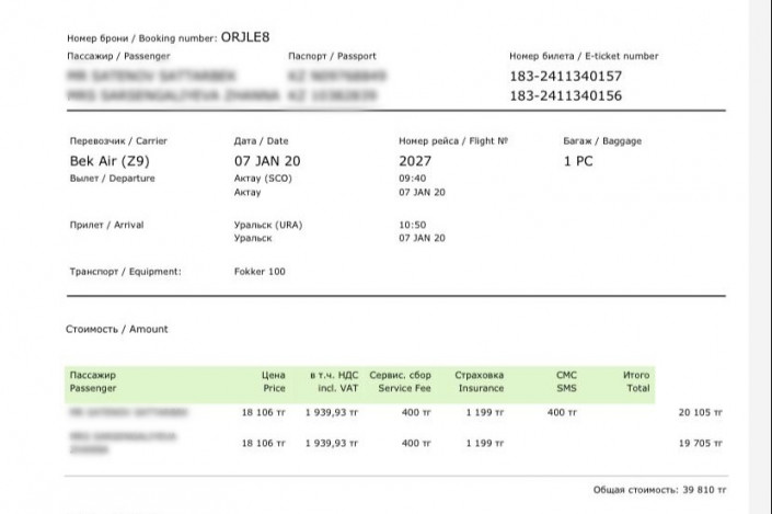 В редакцию Tengrinews.kz обратился житель Уральска Амир С., который не может попасть домой из Актау. По его словам, он приобрел билеты из Актау в Уральск еще в начале декабря 2019 года, до трагедии с рухнувшим под Алматы Fokker 100. Мужчина планировал отметить Новый год в Стамбуле и вернуться домой с пересадкой в Актау.