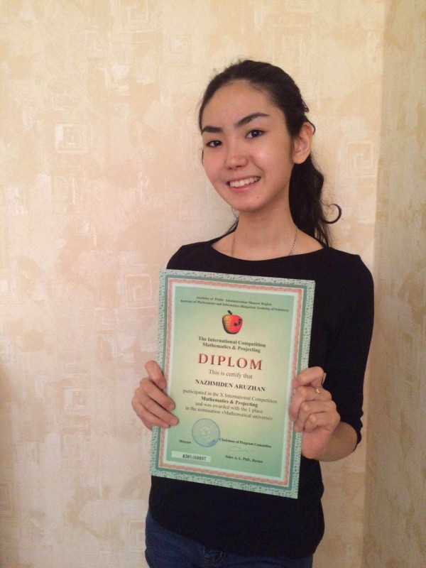 Павлодарка Аружан Нажмиден завоевала золотую медаль на международном научном конкурсе "Математика и проектирование" в номинации "Maтематическая вселенная". Десятиклассница павлодарского казахско-турецкого лицея представила на суд жюри научную работу по поиску формулы нахождения простого числа. Как рассказала девушка, работать над научным проектом она начала еще год назад.