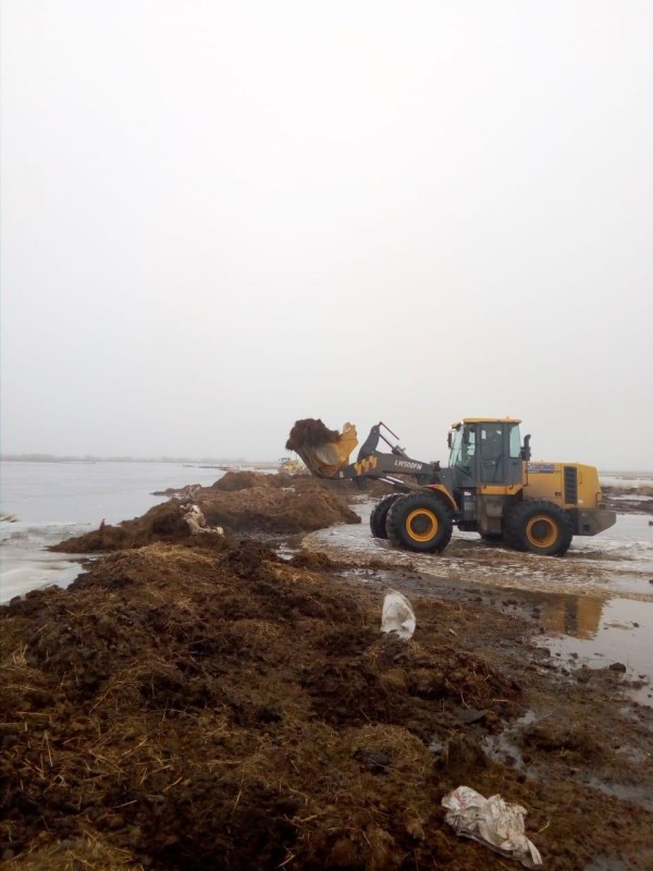 Силами и средствами подразделений ДЧС области и местных исполнительных органов проводятся работы по откачке воды из дворов и по укреплению вала вдоль реки Кызылкой путем укладки около 1500 штук мешкотары, протяженностью около 600 метров высотой 40 сантиметров, выполняется вручную дробление льда.