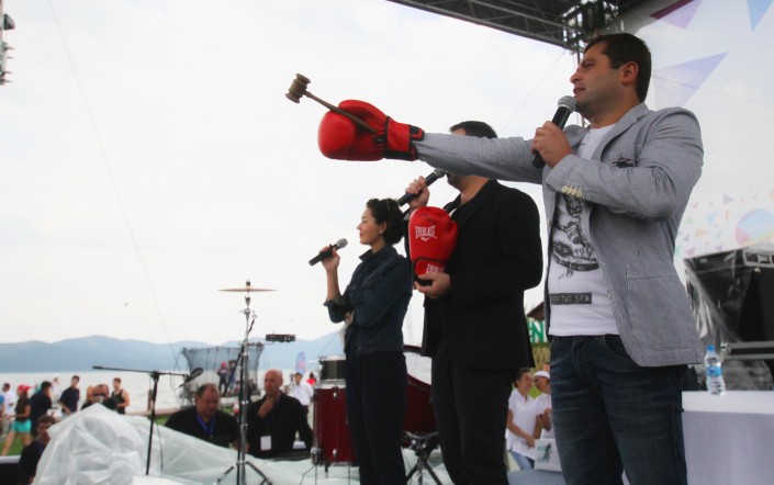 Помимо этого, была разыграна футболка с автографом олимпийского чемпиона Дмитрия Баландина, ушедшая в итоге за 1,45 миллиона тенге. На продажу также выставили автограф Серика Сапиева на собственных перчатках. Боксер лично вручил его победителю аукциона -предпринимателю Нурлану Смагулову.