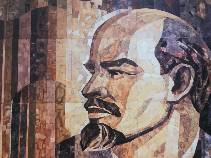 Витраж "Культура Казахстана. Связь прошлого и настоящего". Холл третьего этажа Дома ученых в Алматы