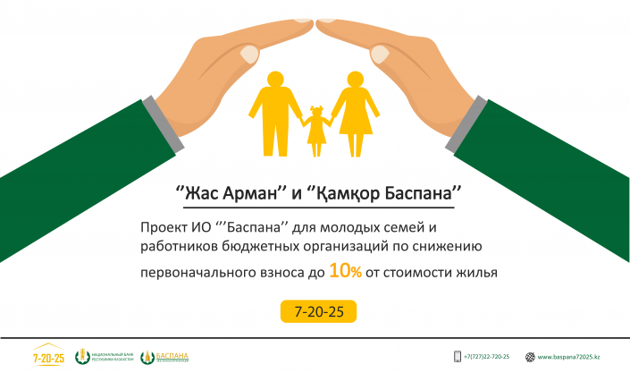 Однако в целях снижения финансовой нагрузки на молодые семьи и работников бюджетной сферы разработаны продукты "Жас арман" и "Қамқор баспана". В категорию "молодые семьи" входят люди в возрасте до 35 лет включительно. Им первоначальный взнос снижен до 10 процентов. Списки участников формируют акиматы согласно установленным правилам.