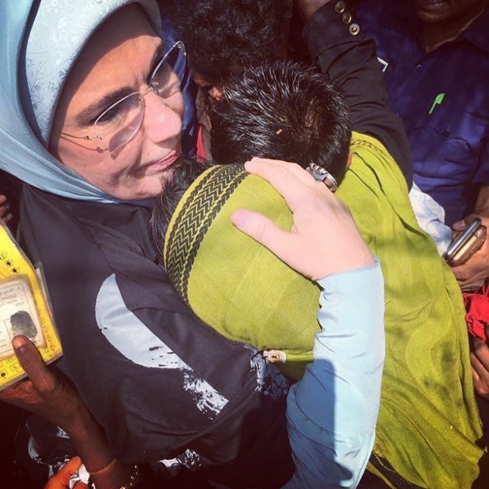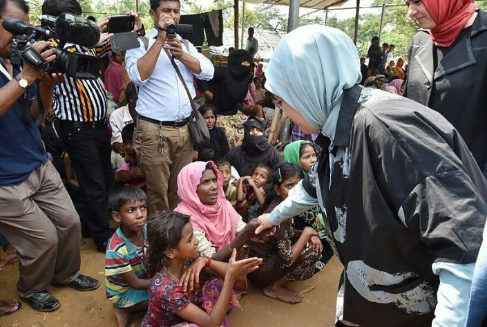 Накануне его супруга и сын, а также турецкие министры посетили лагерь беженцев мусульман-рохинджа в Бангладеше. Эмине Эрдоган призвала международное сообщество принять меры для прекращения насилия против мусульманского населения штата Аракан (Ракхайн) в Мьянме.