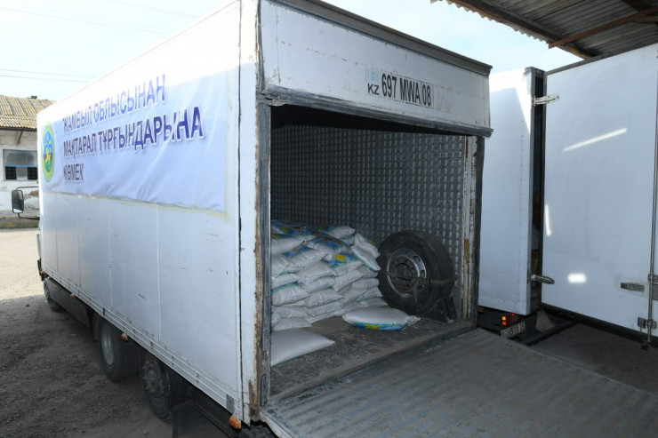 Сообщается, что из Тараза сюда приехал автокараван с более чем 30 тоннами продуктов.