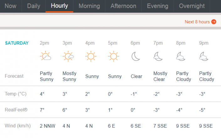 На портале Weather.com температура ноль градусов прогнозируется до 16.00.
