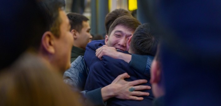 Встречать победителей в аэропорту "Нурсултан Назарбаев" прибыли болельщики, друзья и родственники членов команды. Также поздравить сборную с победой приехали руководитель Управления внутренней политики Астаны Ерлан Каналимов, руководитель Управления по вопросам молодежной политики Асхат Оралов и шоумен Нурлан Коянбаев.