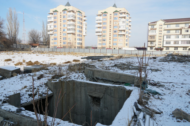 "Из-за того, что во дворах нет нормальной детской площадки, дети зимой и летом играют здесь. Вот этот кран также стоит здесь 4 года. От ветра он шатается в разные стороны. Однажды вообще упадет на кого-нибудь. Только тогда обратят внимание, поднимут шум, уволят кого-нибудь. Зачем работать с последствиями? Почему бы не предотвратить трагедию? Почему все это не контролируется? Либо достройте здание, либо снесите и постройте детскую, спортивную площадки", - негодует местный житель Мади Калжанов.