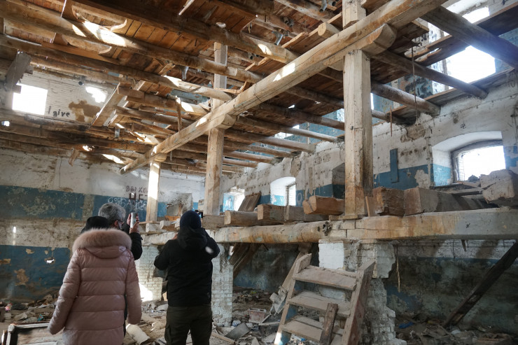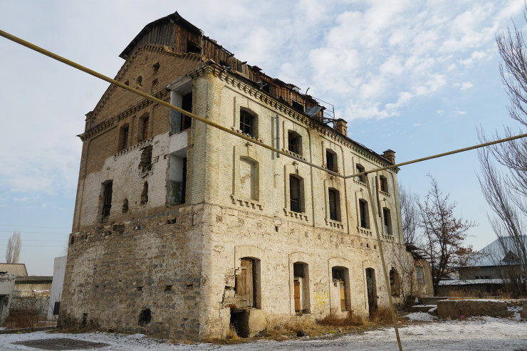 Здесь же размещается полуразрушенное здание. Горожане рассказали, что оно было построено в 1903 году. Сейчас здание пустует, и в него можно свободно зайти.