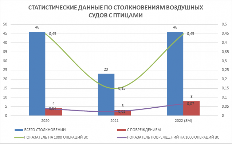 Кроме того, рост случаев столкновений воздушных судов с птицами также связан с резким увеличением числа полетов после снятия ковидных ограничений во всем мире.