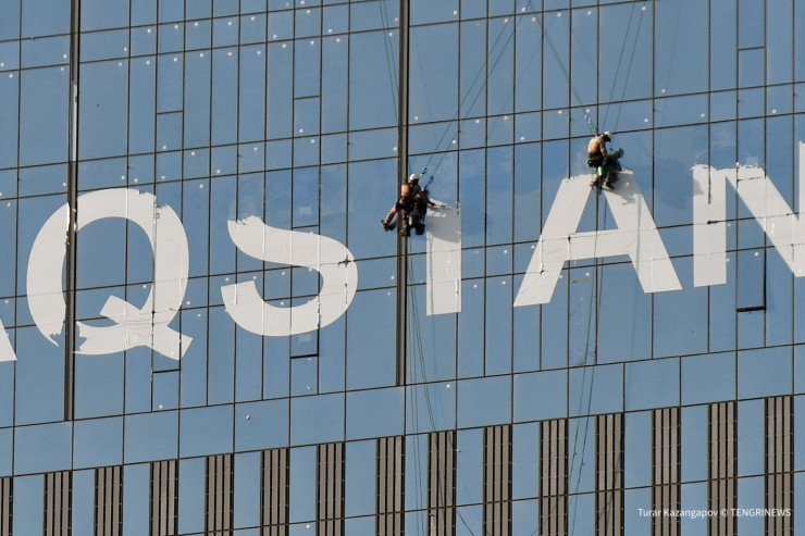 Надпись Qazaqstan стирают на здании многофункционального комплекса "Абу-Даби Плаза" в Нур-Султане. В администрации комплекса назвали причину, передает Tengrinews.kz.