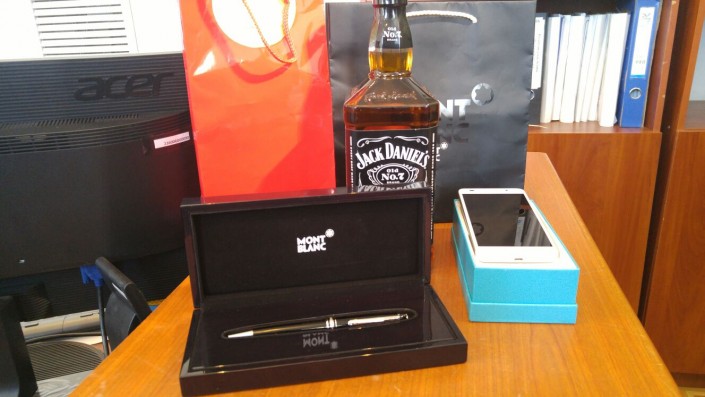 В этом году уже сами представители Министерства финансов сдали подаренную литровую бутылку виски. Министерством индустрии и развития сдана одна авторучка.