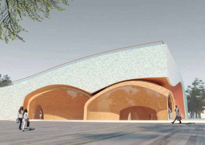 Туристический визит-центр. Спонсором выступает Жамбылская область. Площадь - 2 200 квадратных метров.