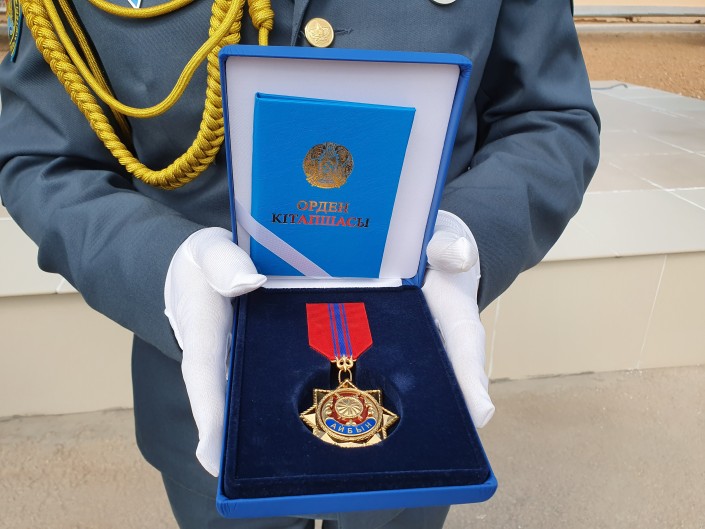 Родным военнослужащих, погибших при ликвидации последствий пожара на складе с боеприпасами в Арыси, вручили ордена "Айбын" II степени, передает корреспондент Tengrinews.kz.