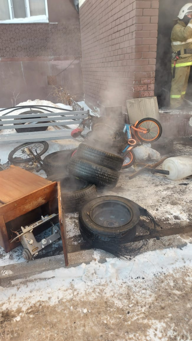 Прибывшие на место пожарные эвакуировали по лестничному маршу 18 человек, силами сотрудников ДЧС спасено четверо детей. Площадь пожара составила пять квадратных метров, но на полную ликвидацию огня потребовался почти час. В горевшей кладовке хозяева среди прочих вещей хранили и автомобильные шины. Причины возгорания сейчас выясняются.