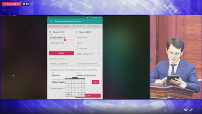 "Я думаю, это устройство (планшет. - Прим. автора) скоро будет у всех полицейских цениться выше, чем их табельное оружие. Почему? Потому что через это будет идти оформление всех документов, все будет интегрировано именно сюда, - начал объяснять Багдат Мусин нововведения. - Пример дорожной полиции. Он будет иметь такое устройство. Мы уже договорились с акиматом Астаны. Ввожу свой ИИН и сейчас подтянутся мои данные. Когда человека будут останавливать органы дорожной полиции, мы предполагаем, что они будут иметь такие устройства, будут искать по ИИНу все данные из государственных баз данных. Суть в том, что это устройство подтягивает все данные из информационных систем, дальше набирается номер автомашины, тоже подтягиваются данные из базы, дальше остается выбрать только статью".