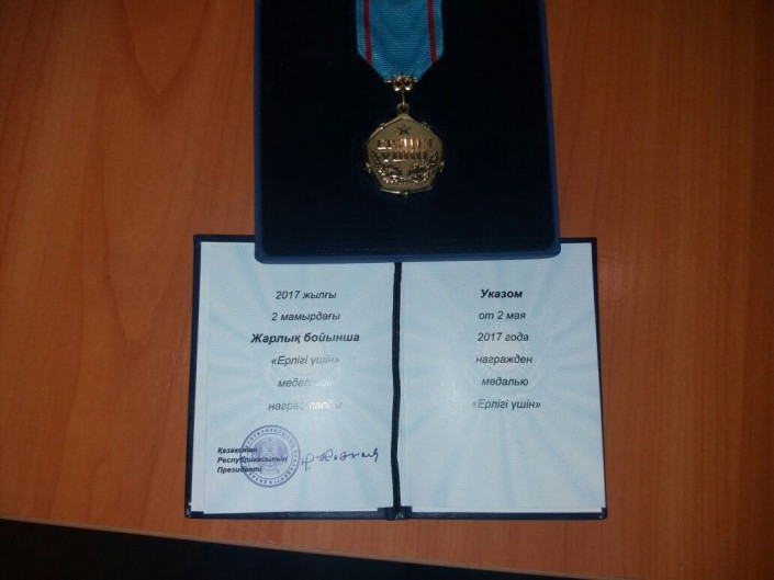 За проявленное мужество и решительность при спасении детей в мае этого года Мурат Нурсеитов награжден орденом "Айбын" III степени. Его напарник и лучший друг, старший сержант Баянбек Жунусов получил медаль "Ерлігі үшін".