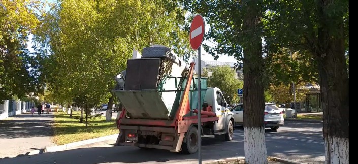 Кроме того, с территории здания выехал грузовик, по всей видимости, со старыми вещами.