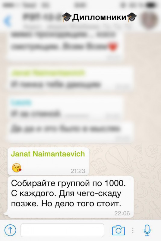 В редакцию Tengrinews.kz студенты прислали аудиозаписи и скриншоты переписок, в которых упоминаются фамилии нескольких преподавателей вуза. Судя по отправленным сообщениям, за сдачу рубежного контроля со студентов вымогали по 5000 тенге. Эти факты подтвердили и в самой академии. По словам исполняющего обязанности проректора и ректора КазАТК Улана Куттыбаева, действительно на одного из преподавателей - Жаната Аралбаева - поступала жалоба в прокуратуру со стороны студентов.