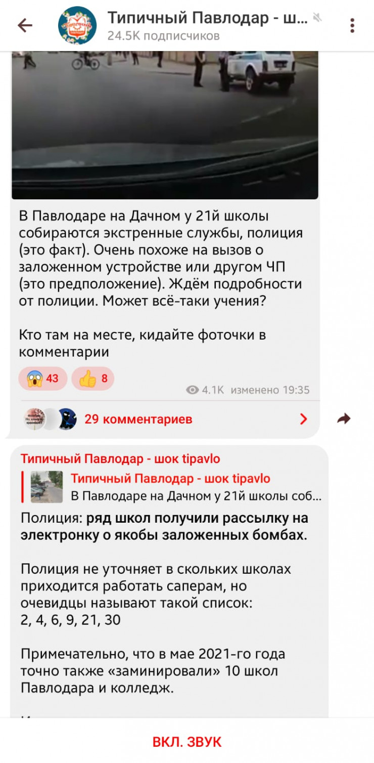 В соцсетях павлодарцы называют не менее десятка школ, куда в спешном порядке были отправлены представители экстренных служб региона.