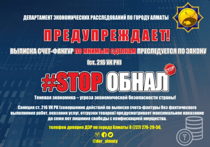 Об однодневке стало известно в результате оперативно-профилактического мероприятия "Стоп Обнал". Сообщается, что 498 миллионов тенге преступникам удалось похитить с ранее арестованных счетов. Деньги вывели на счет подставной компании и благополучно обналичили.