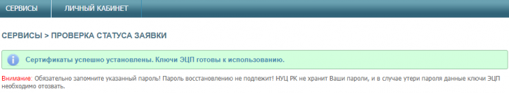 Придумайте и введите пароль на ваши ключи ЭЦП и нажмите кнопку "Загрузить сертификаты".
