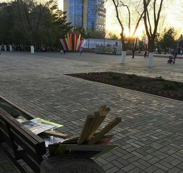 "Знаете, чего я очень боюсь? Боюсь однажды после шествия "Бессмертного полка" увидеть портреты своих дедушек брошенными где-то на улице или, еще хуже, в мусорном баке. Оба моих деда - ветераны войны. Возможно, их портреты с наградами есть где-то в архивах. И нет никакой гарантии, что их когда-нибудь не распечатают в типографии и не вручат посторонним людям для создания патриотической массовки. Фото используют, а после выбросят за ненадобностью. Сердце екнуло, когда увидел эти портреты, брошенные после марша в Караганде. Чьи вы, солдаты?" - написал Ерлан Джетенов.