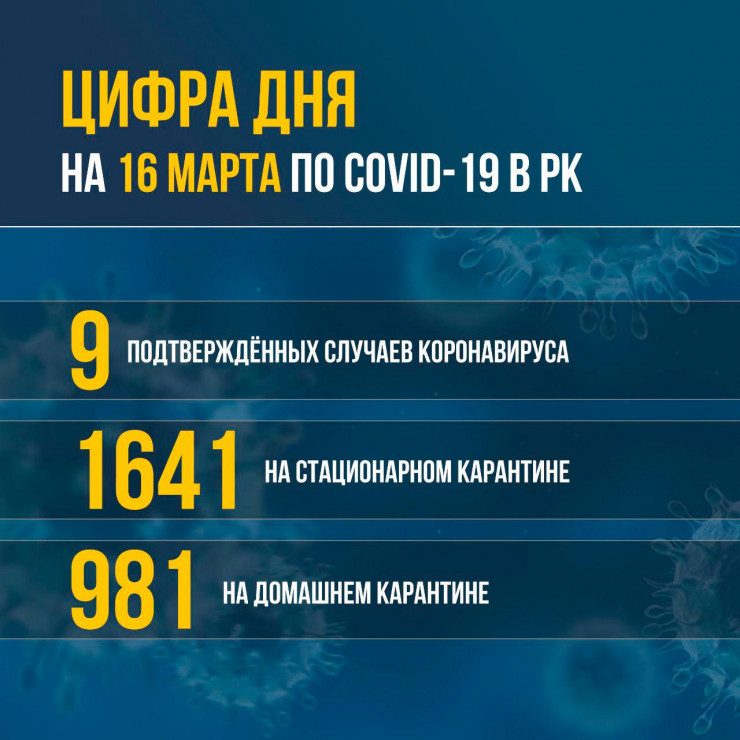 На сегодняшний день в Казахстане девять подтвержденных случаев коронавируса. Из них семь человек находятся в стационарах Алматы и два человека - в Нур-Султане, еще один казахстанец находится в Германии