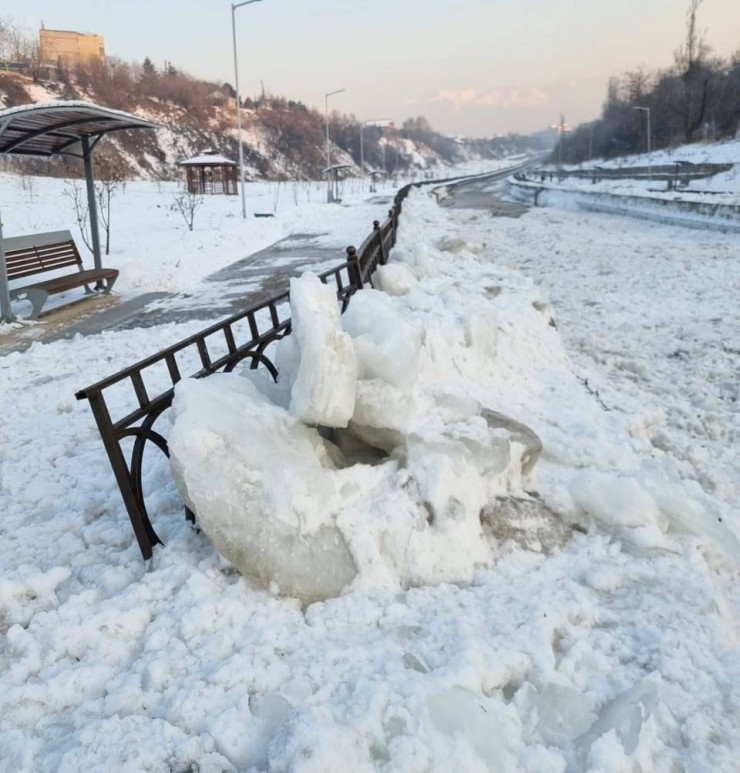 На данный момент сотрудники Управления экологии и окружающей среды, районного акимата, ДЧС Алматы и Службы спасения очищают и восстанавливают территорию. Ледяные глыбы будут собираться и вывозиться на Есентайский водоприемник.