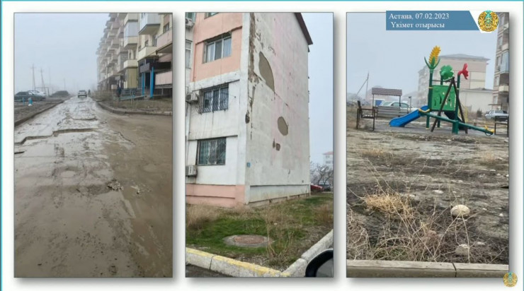 "Хочу отдельно остановиться на вопросе построенных домов по госпрограмме жилищного строительства. Государство выделяет значительные средства на строительство жилья. Но покажите фотографии этих дворов. Я не называю регионы, где построены такие дома. Одно могу сказать точно: примерно такая же картина везде. Посмотрите, где играют дети, посмотрите на благоустройство, на дороги. Неужели теперь это норма?" - сказал Смаилов на заседании правительства.
