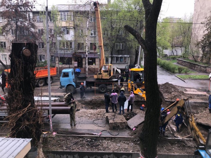 Рано утром 10 апреля на участке, проходящем по улице Пушкина южнее улицы Толе би, произошел порыв изношенного трубопровода. Он эксплуатировался с 1993 года.