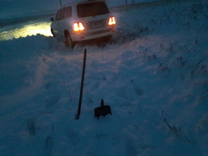 Положение усугублялось метелью, морозной погодой, скудными запасами бензина и садившейся батарейкой на сотовом телефоне. Мужчина вместе со своим попутчиком мог попросту замерзнуть.