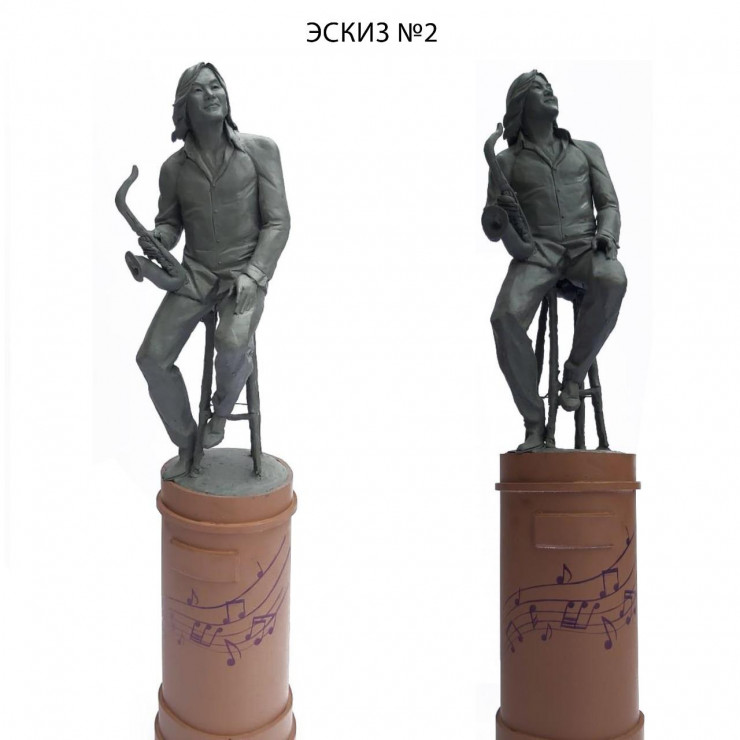 "На эскизах композитор изображен в разных вариациях, в том числе с любимым музыкальным инструментом - саксофоном", - говорится в сообщении.