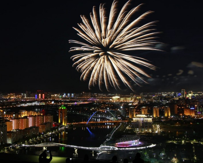 Салют можно было посмотреть с двух точек: набережная реки Есиль и Триатлон-парк.