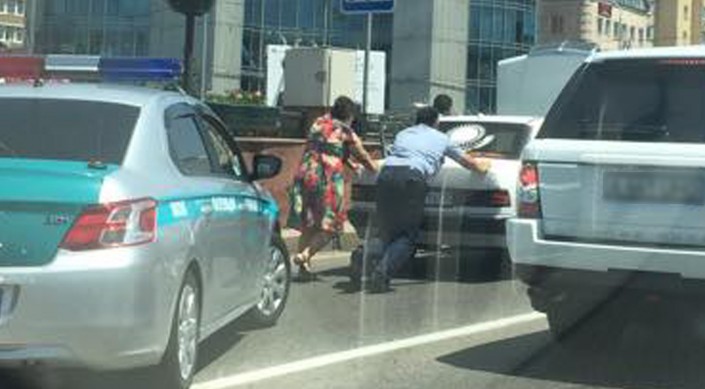 На видеорегистратор удалось снять, как сотрудник полка дорожно-патрульной полиции местной полицейской службы Шымкента останавливает внедорожник, который ехал с выключенными ближними фарами. Вместо того чтобы сразу составить административный протокол, сотрудник полиции пытается выяснить причину нарушения и даже помочь удивленному водителю. Дорожный инспектор достает из своей служебной машины отвертку и помогает хозяину джипа.