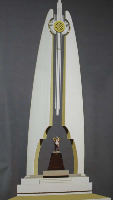 Скульптура в виде домбры. В центре расположен знак - символ орла, поддерживающий шанырак.