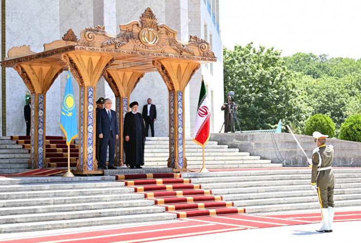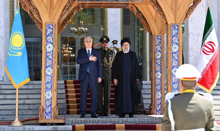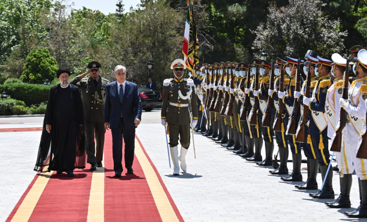Начальник почетного караула отдал рапорт лидерам двух стран. После исполнения гимнов Казахстана и Ирана Касым-Жомарт Токаев и Ибрахим Раиси представили друг другу членов официальных делегаций.