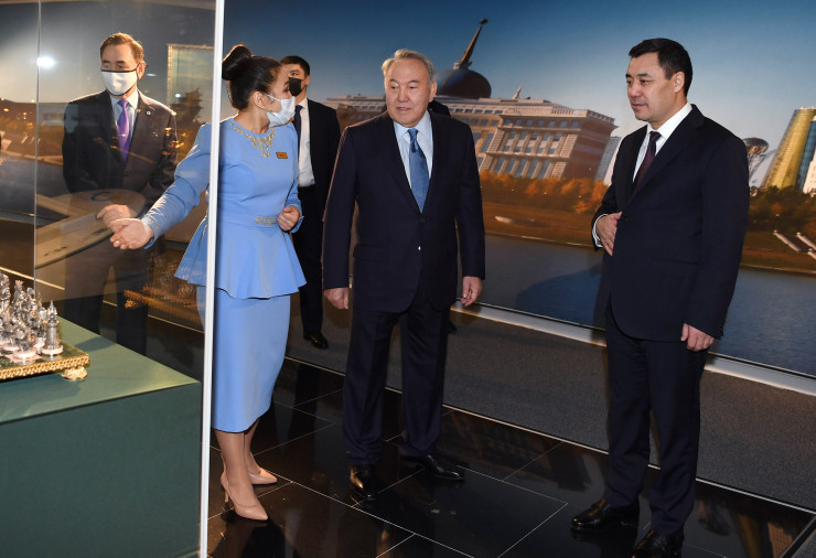 Перед началом переговоров Елбасы и Президент Кыргызской Республики осмотрели экспозиции, представленные в "Назарбаев-центре".