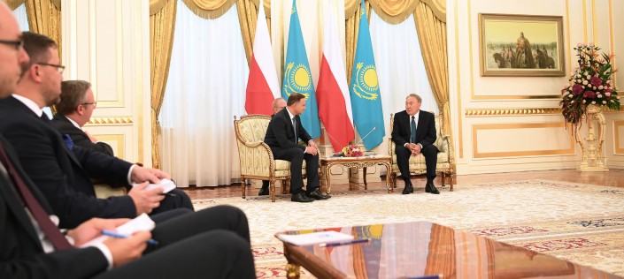 Президент Польши Анджей Дуда прибыл в Казахстан с государственным визитом. Нурсултан Назарбаев принял своего коллегу в столичной резиденции. Президент Польши поблагодарил Назарбаева за приглашение посетить Казахстан. Он отметил, что в Астане он примет участие в казахстанско-польском бизнес-форуме, посетит выставку EXPO-2017, а также проведет встречу с премьер-министром страны Бакытжаном Сагинтаевым.