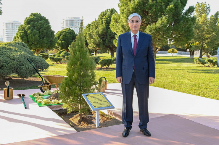 Президент Токаев посадил дерево на аллее почетных гостей в Ашхабаде Фото с сайта akorda.kz
