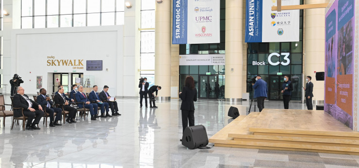 Главе государства показали мастер-план развития кампуса, научных центров и лабораторий. Кроме того, была представлена презентация о проектах и программах в сферах науки, здравоохранения, цифровизации, сельского хозяйства, экологии и спорта, посредством которых университет вносит вклад в реализацию инициатив Президента.