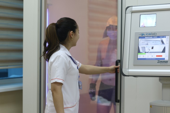 Есть в Городском курорте и полная противоположность бане, где зима длится круглый год, - криосауна: температура в ней достигает -110 градусов по Цельсию. Все в лечебных целях. Криосауна - это кабина, заполненная смесью азота и воздуха, которые охлаждают поверхность тела пациента в течение 2 минут. Резкая смена температуры, от теплой комнатной до экстремальной минусовой, по словам экспертов, благоприятно влияет на обновление клеток и всех системы организма. "Холодная баня" особенно рекомендуется при псориазе, нейродермите, угревой сыпи, лишнем весе, слабом иммунитете и болезнях костей и повреждениях суставов. Среди клиентов криосауны немало спортсменов, а однажды в ней побывали и дипломаты из Японии.