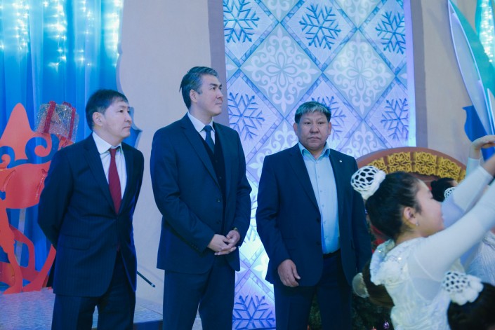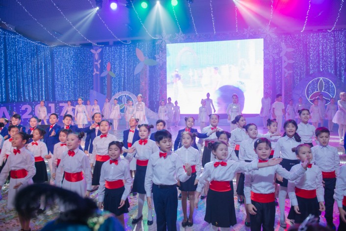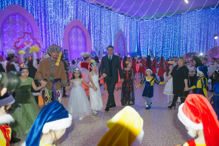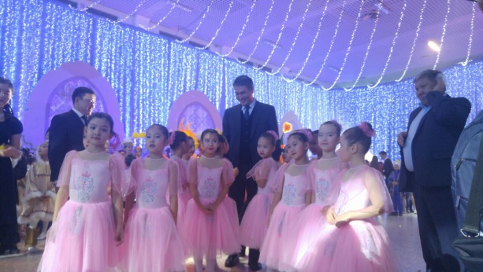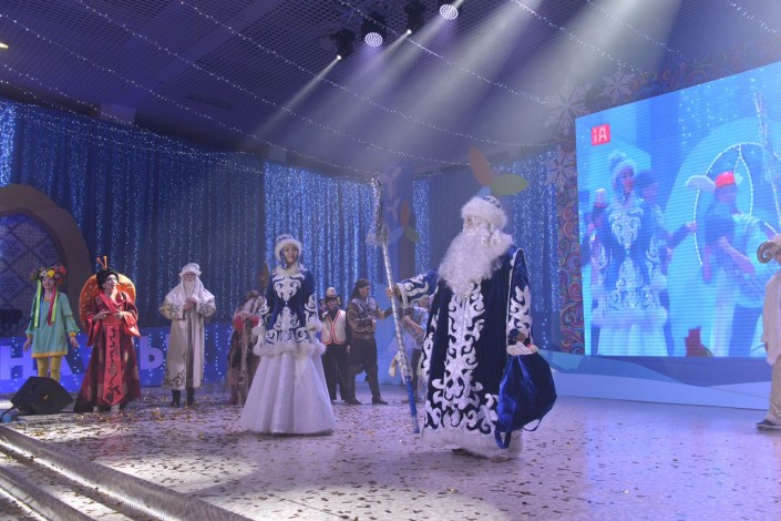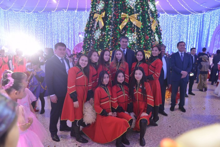 Торжество открыл Глава государства своим видеопоздравлением. Сам Нурсултан Назарбаев не присутствовал на празднике, так как находится с рабочим визитом в Санкт-Петербурге. С большого экрана Президент обратился ко всем детям, отмечая, что они все заслужили такой праздник. После пожеланий Главы государства в зале Дворца школьников началось главное действие с участием Деда Мороза и Снегурочки.
