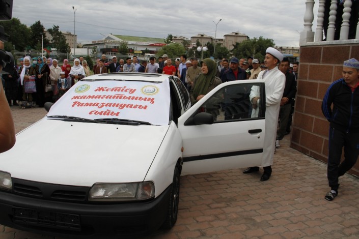 "В мечети насчитывается около 20 учеников. Они предложили на те деньги, которые собираются на садака, купить автомобиль для нашей Земфиры-апай. За это время она стала для них матерью. Это очень заботливая, добрая женщина. Она достойна большего, чем просто автомобиль. Она содержит в чистоте нашу мечеть, готовит для всех, работает без выходных. За уборку она получает 30 тысяч тенге, и только недавно стали платить за готовку - 50 тысяч тенге. Живет она на окраине города, чтобы добраться до дома, ей нужно сделать три пересадки. Поэтому в священную ночь - Кадыр тун мы собрали 537 тысяч тенге. Сверху мы еще добавили 150 тысяч тенге и купили автомобиль марки Nissan Primera 1993 года выпуска. Машина в хорошем состоянии. И сегодня, в Ораза айт, мы ей вручили ключи от машины", - рассказали в мечети.
