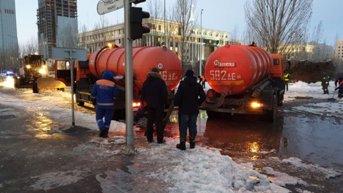 Как выяснилось, около пяти часов утра на левом берегу по улице Сыганак, в районе гостиницы "Пекин Палас" произошел порыв водопровода диаметром 400 миллиметров.