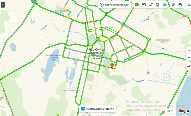 Анализ показал, что после введения карантина затрудненное движение наблюдается лишь на некоторых участках дорог. В целом же дороги Алматы и Нур-Султана стали свободными.