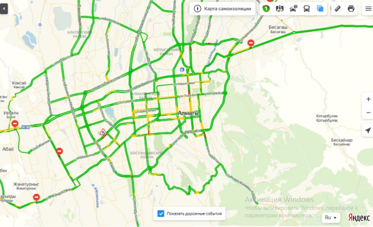 В Алматы и Нур-Султане после введения карантина практически исчезли пробки. Загруженность на дорогах снизилась до одного балла. Такие данные Tengrinews.kz предоставили в компании Яндекс.Казахстан.