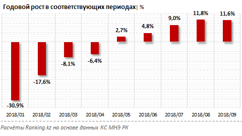 До апреля 2018 года объeм ввода нового жилья был гораздо ниже, чем в 2017 году. После выхода программы "7-20-25" жилстрой увеличил темпы ввода и вышел в положительную динамику. По итогам трeх кварталов застройщики в РК ввели в эксплуатацию 8,84 миллиона квадратных метров жилья - сразу на 11,6 процента больше, чем в аналогичном периоде годом ранее.